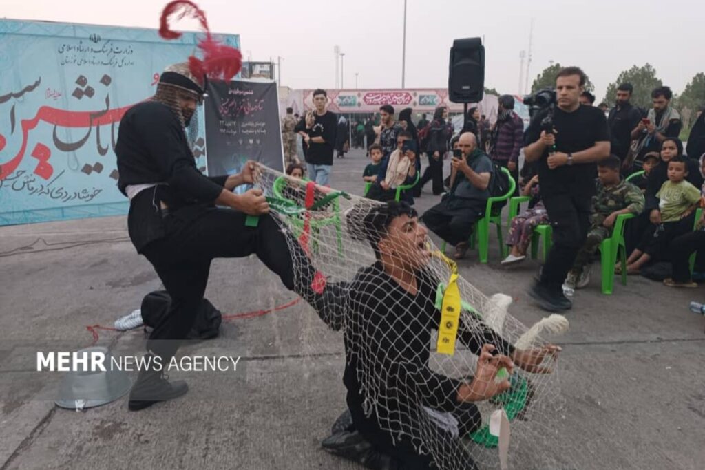 به گزارش خبرنگار مهر، نمایش خیابانی «ماندن یا رفتن» با موضوع مقاومت مردم فلسطین، به کارگردانی توفیق مرجانی از گروه تئاتر غدیر شهرستان کارون، در دو نوبت در مقابل موکب فرهنگ، هنر و رسانه در پایانه مرزی چذابه به اجرا درآمد. این اثر که به زبان عربی اجرا شد، در ششمین روز از «ششمین سوگواره ملی تئاتر میدانی و تعزیه اربعین حسینی» مورد توجه و استقبال گسترده زائران اربعین حسینی قرار گرفت.