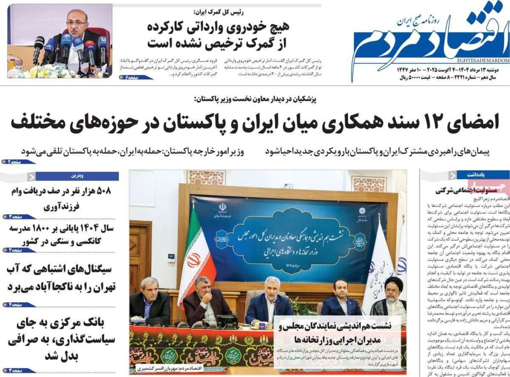روزنامههای اقتصادی دوشنبه ۱۳ مرداد ۱۴۰۴ Reza Jannati 3 ماه پیش روزنامه های اقتصادی به موضوع امضای ۱۲ سند همکاری میان ایران و پاکستان و رکود بازار مسکن پرداختند .
