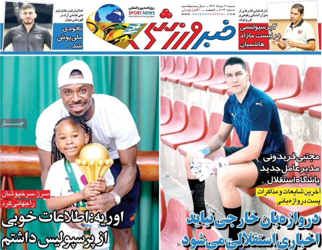 روزنامههای ورزشی شنبه ۱۱ مرداد ۱۴۰۴ Reza Jannati 5 ماه پیش روزنامه های ورزشی به نقل و انتقالات لیگ برتر و درخشش کشتی گیران در مسابقات پرداختند .