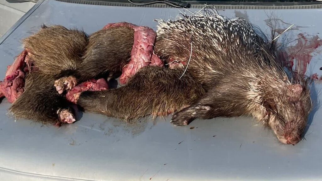 در بازرسی از متخلفان، لاشه یک گراز وحشی و یک تشی به همراه سگهای شکاری کشف شد.
