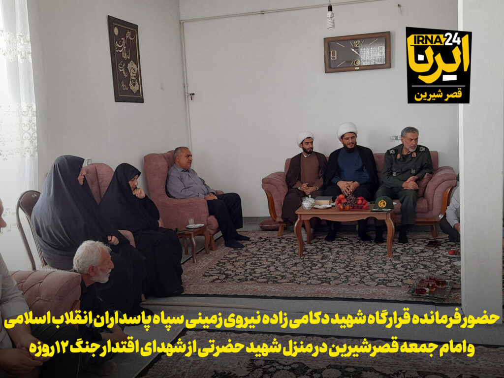 قصرشیرین – ایرنا – در آستانه اربعین حسینی، فرمانده قرارگاه شهید دکامی‌زاده نیروی زمینی سپاه، به همراه امام جمعه قصرشیرین با حضور در منزل شهید اقتدار فرامرز حضرتی از شهدای سرافراز جنگ ۱۲ روزه دفاع مقدس علیه رژیم صهیونیستی، با خانواده این شهید والامقام دیدار و گفت و گو کردند.