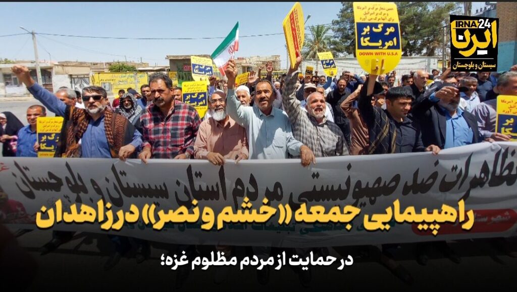 زاهدان – ایرنا – مردم شهیدپرور زاهدان، امروز سوم مرداد پس از اقامه نماز سیاسی،عبادی جمعه در مصلی این شهرستان، همزمان با سراسر کشور در راهپیمایی «جمعه خشم و نصر» شرکت کرده و حمایت خود را از مردم و کودکان مظلوم غزه اعلام کردند.
