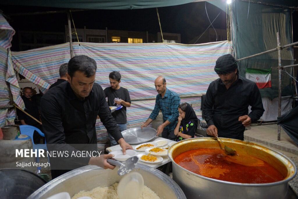 موکبهایی که از همان صبح زود بوی زندگی میدهد، دیگهای بزرگ آش رشته روی شعلههای آتش قلقل میکنند، و زنانی با چادرهای ساده و دستهایی پرکار، سبزی آش را پاک میکنند. مردان میان سال، با پیشبندهای سفید و پیشانیهای عرق کرده، مشغول تقسیم حلیم در کاسهها هستند.