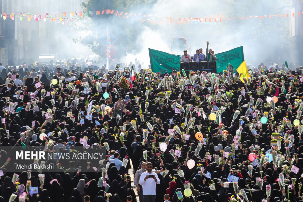 امروز نیز مردم قم همان شور و عشق را بازآفرینی کردند و زنانی که کودکانشان را در آغوش گرفته بودند و مردانی که پرچمهای یا فاطمه معصومه (س) در دست داشتند، نشان از عمق دلدادگی به این بانوی بزرگوار داشت.