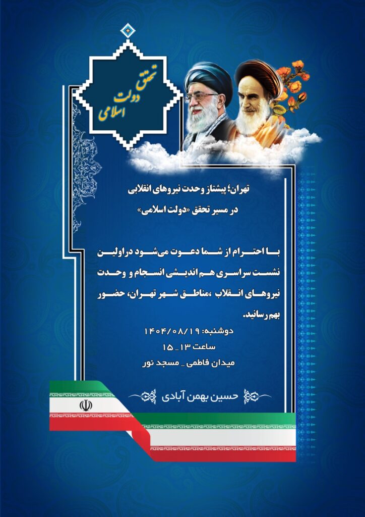 به گزارش خبرنگار سیاسی پایگاه خبری فردای عالیشاهی ؛ نشست سراسری رؤسا و اعضای شورای راهبردی نیروهای انقلاب مناطق ۲۲گانه شهر تهران با شعار «تهران؛ پیشتاز وحدت نیروهای انقلابی در مسیر تحقق دولت اسلامی»، دوشنبه ۱۹ آبانماه ۱۴۰۴ از ساعت ۱۳ تا ۱۵ در مسجد نور میدان فاطمی برگزار خواهد شد.