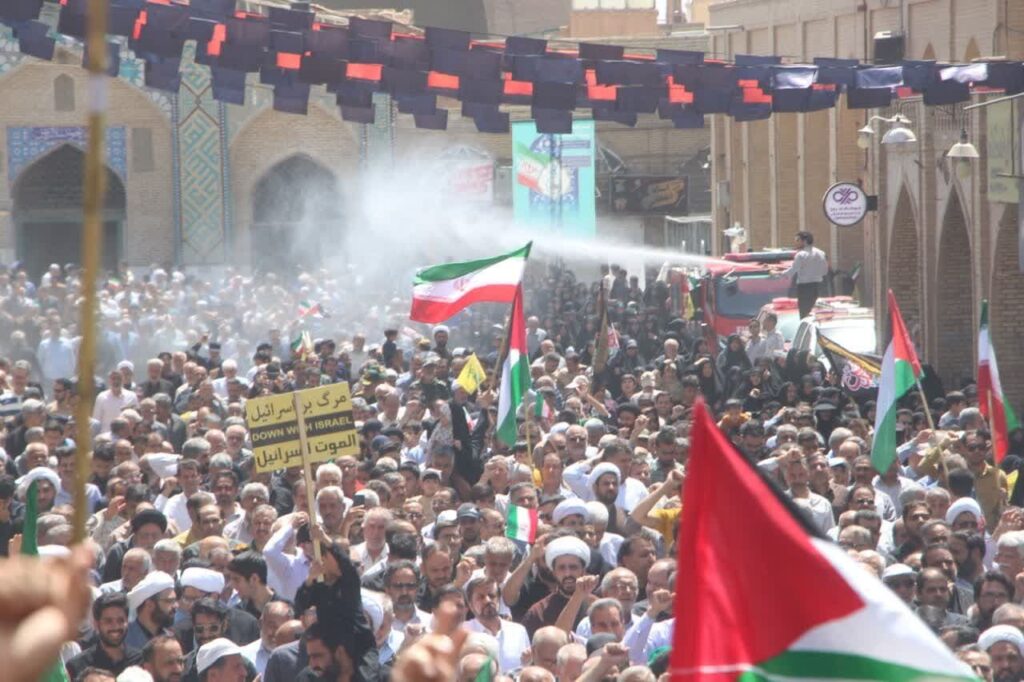 یزد- ایرنا- مردم مومن و ولایتمدار یزد بعد از اقامه نمازجمعه در ۲۷ نقطه در جمعههای نصر و خشم با حضوری گسترده در راهپیمایی ضمن همبستگی با مردم ستمدیده غزه و فلسطین بار دیگر جنایات غاصبان صهیونیستی را محکوم کردند.