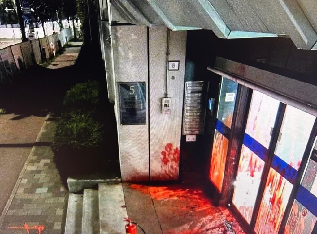 عکسهای منتشر شده توسط این وزارتخانه نشان میدهد که ورودی سفارتخانه صهیونیستها با رنگ قرمز پوشیده شده و درب ورودی آن شکسته شده است.