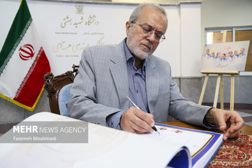 در ادامه این مراسم، دکتر محمدرضا مخبر دزفولی، رئیس فرهنگستان علوم، در دفتر یادبود این شهدا نوشت: تبریک و تسلیت عرض میکنم شهادت دانشمندان عزیز کشورمان. افتخار میکنیم به داشتن چنین نخبگان و اندیشمندانی که مایه مباهات ایران و ایرانی هستند.