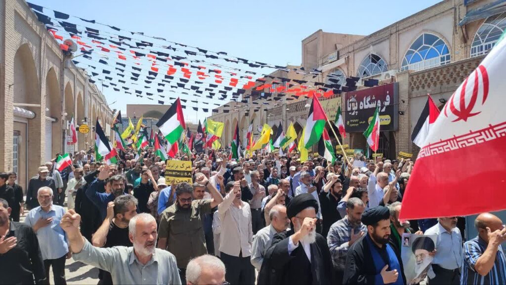 یزد-ایرنا- مردم دارالعباده یزد ، بعد از نماز جمعه این هفته با حضور در راهپیمایی جمعه های خشم ، انزجار خود را از کشتار مردم ،زنان و کودکان بی دفاع غزه توسط رژیم صهیونیستی اعلام کردند.