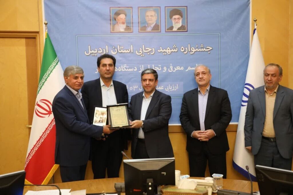 گفتنی است، در پایان این نشست از ۶ دستگاه اجرایی برتر استان شامل ادارات کل میراث فرهنگی، گردشگری و صنایع دستی، انتقال خون، امور مالیاتی و استاندارد و شرکت‌های آب منطقه‌ای و شهرک‌های صنعتی در جشنواره شهید رجایی با حضور استاندار اردبیل تجلیل شد.