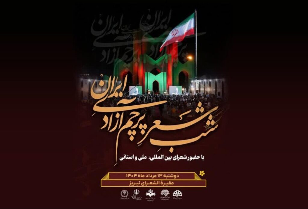 پایان گفت: شب شعر پرچم آزادی ایران با مشارکت صدا و سیما، اداره کل فرهنگ و ارشاد اسلامی آذربایجان شرقی، حوزه هنری آذربایجانشرقی، سازمان تبلیغات اسلامی، صدا و سیمای مرکز آذربایجان شرقی و انجمنهای ادبی این شهر برگزار میگردد و امید است شاهد همدلی هرچه بیشتر اقشار مختلف جامعه در پاسداشت فرهنگ ایثار و مقاومت باشیم.