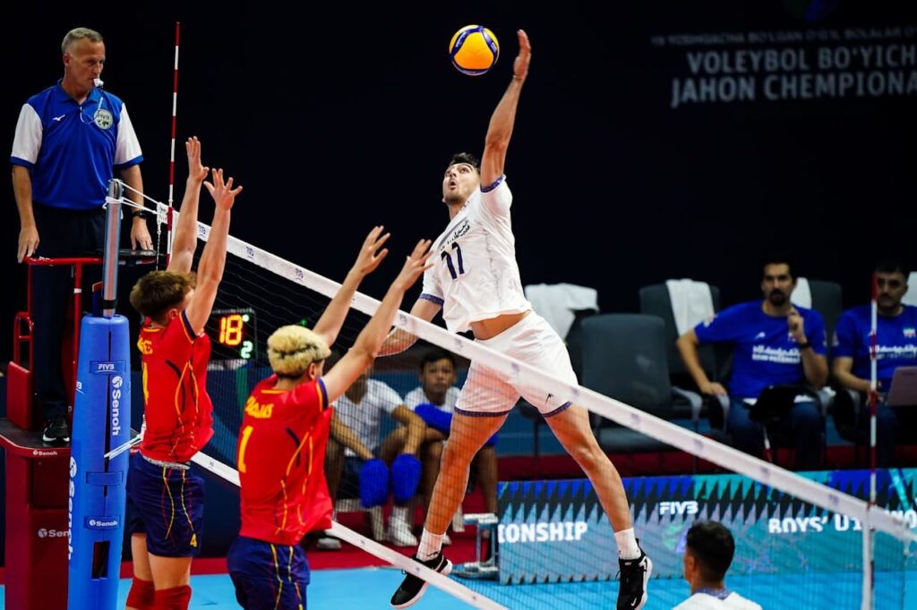 تیم والیبال نوجوانان ایران که در گروه سوم با تیمهای ایتالیا، مصر، تونس، لهستان و اسپانیا همگروه است، از ساعت ۹:۳۰ دقیقه در نخستین دیدار خود در مرحله مقدماتی به مصاف اسپانیا رفت.