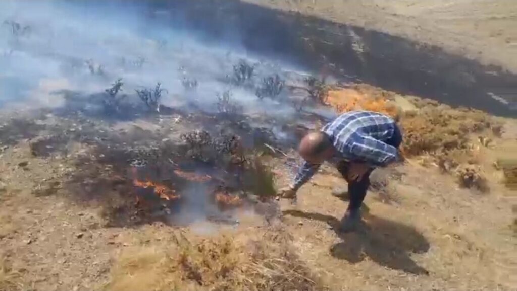 همدان- ایرنا- در پی آتش سوزی اراضی ملی در حوالی روستای زمانآباد، فرماندار ملایر که به شکل اتفافی در حال عبور از منطقه بود برای مهار آتش، دست به کار شد.