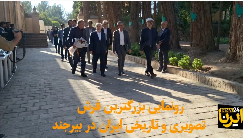 بیرجند- ایرنا- بزرگترین فرش تصویری تاریخی ایران با حضور قائم مقام وزیر میراث فرهنگی، گردشگری و صنایع دستی، استاندار خراسان جنوبی و جمعی از مسوولان در باغ و عمارت جهانی اکبریه بیرجند رونمایی شد.