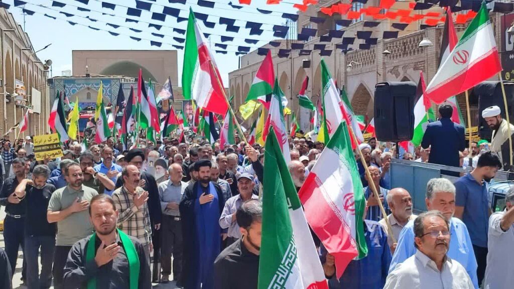 یزد-ایرنا- راهپیمایی جمعه های خشم با حضور اقشار مختلف مردم دارالعباده یزد ، بعد از نماز جمعه امروز و در محکومیت جنایات رژیم صهیونیستی در غزه ، برگزار شد.
