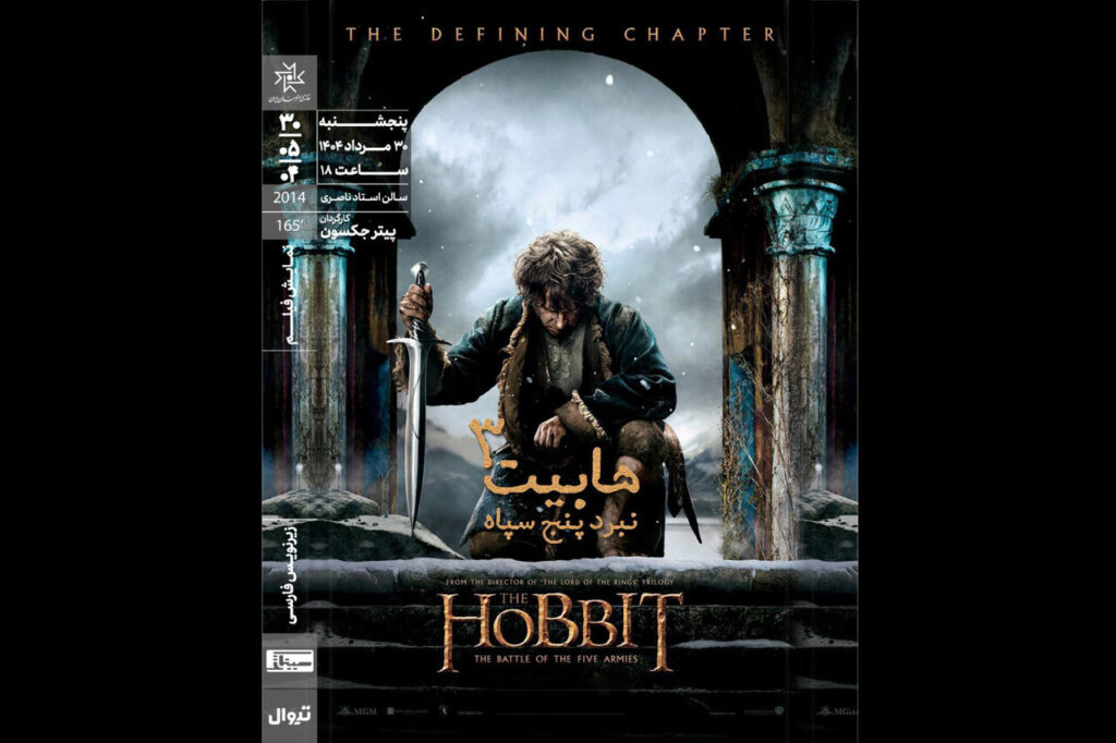 به گزارش خبرگزاری مهر، فیلم سینمایی «هابیت ۳: نبرد پنج سپاه» (۲۰۱۴) به کارگردانی پیتر جکسون ساعت ۱۸ پنجشنبه ۳۰ مرداد در سالن ناصری خانه هنرمندان ایران به نمایش درمیآید.